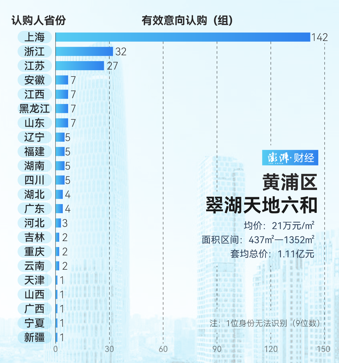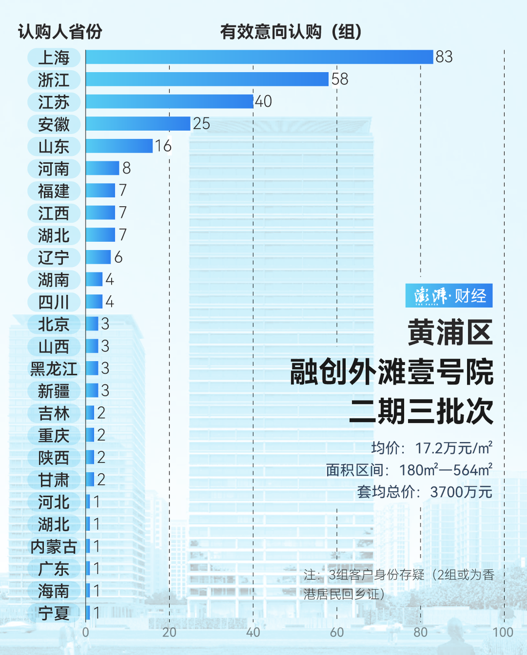 澎湃新闻对其中14个线路灵验意向认购客户名单的豪宅面貌按省(市)进行统计分析,去除公司买家,共计识别3787组客户。其中,上海客户1792组,占比47.32%;江浙籍客户共计930组,占比24.56%。从认购名单的身份信息识别,男性占比55.98%;女性占比44.02%。